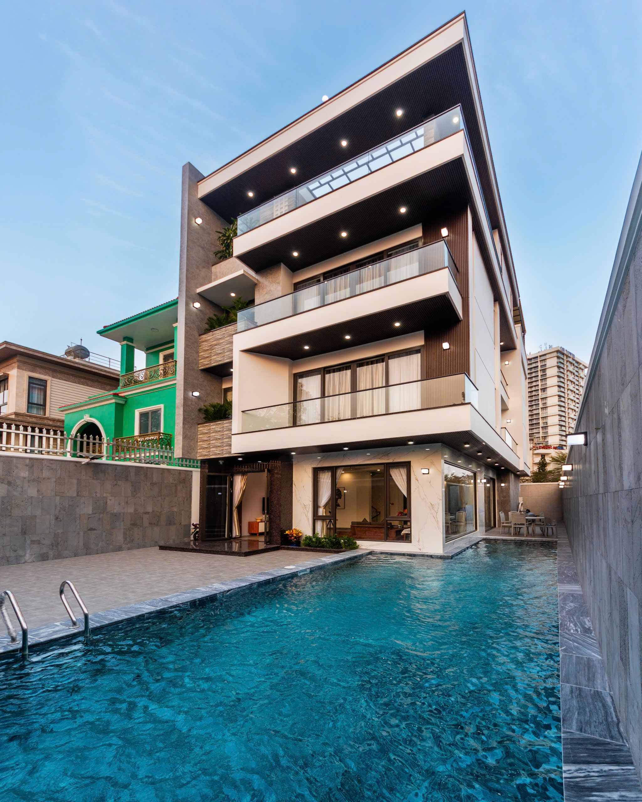 Căn villa nổi bật với kiến trúc mới, sang trọng, không gian mở đón ánh sáng tự nhiên.