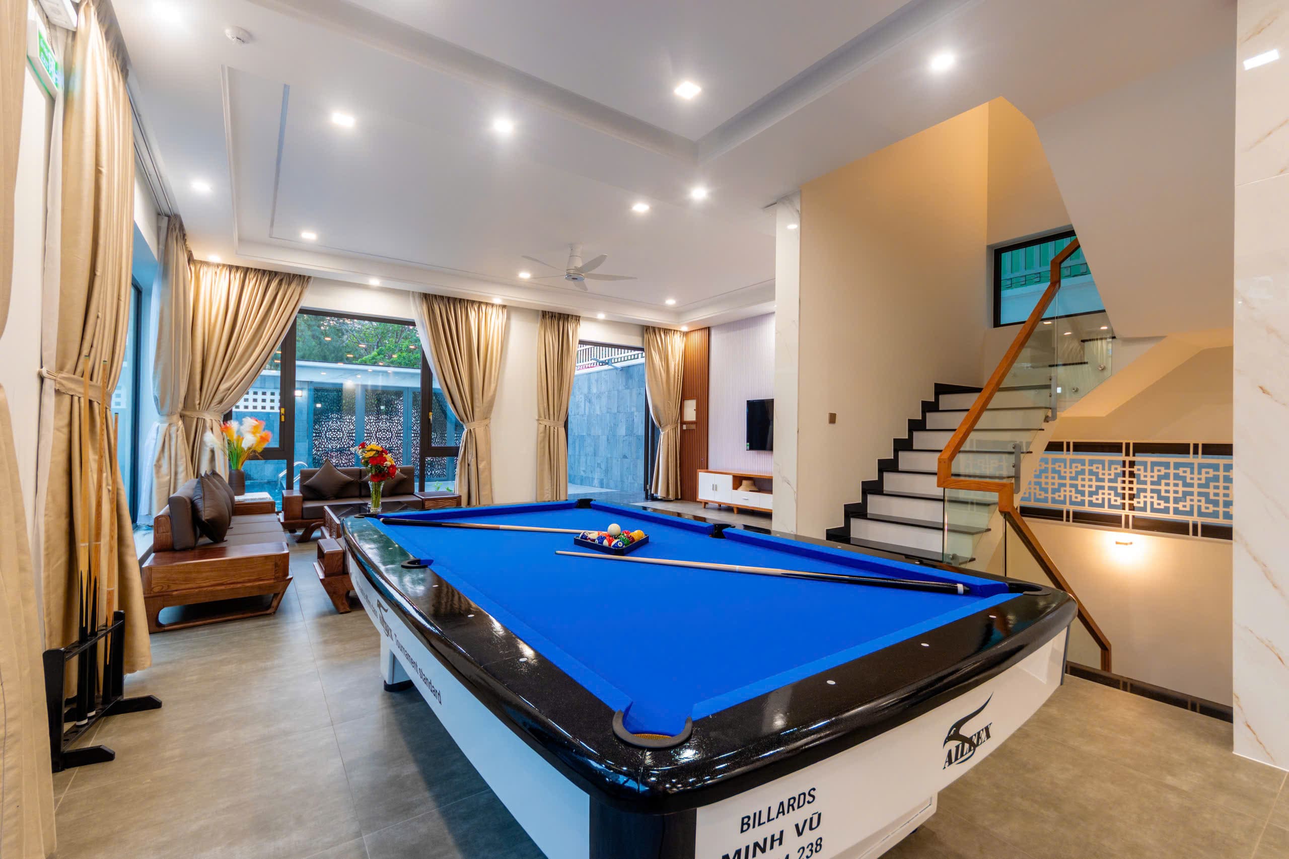 • Hồ bơi riêng , Bàn bida giải trí bên cạnh khu bếp lớn .